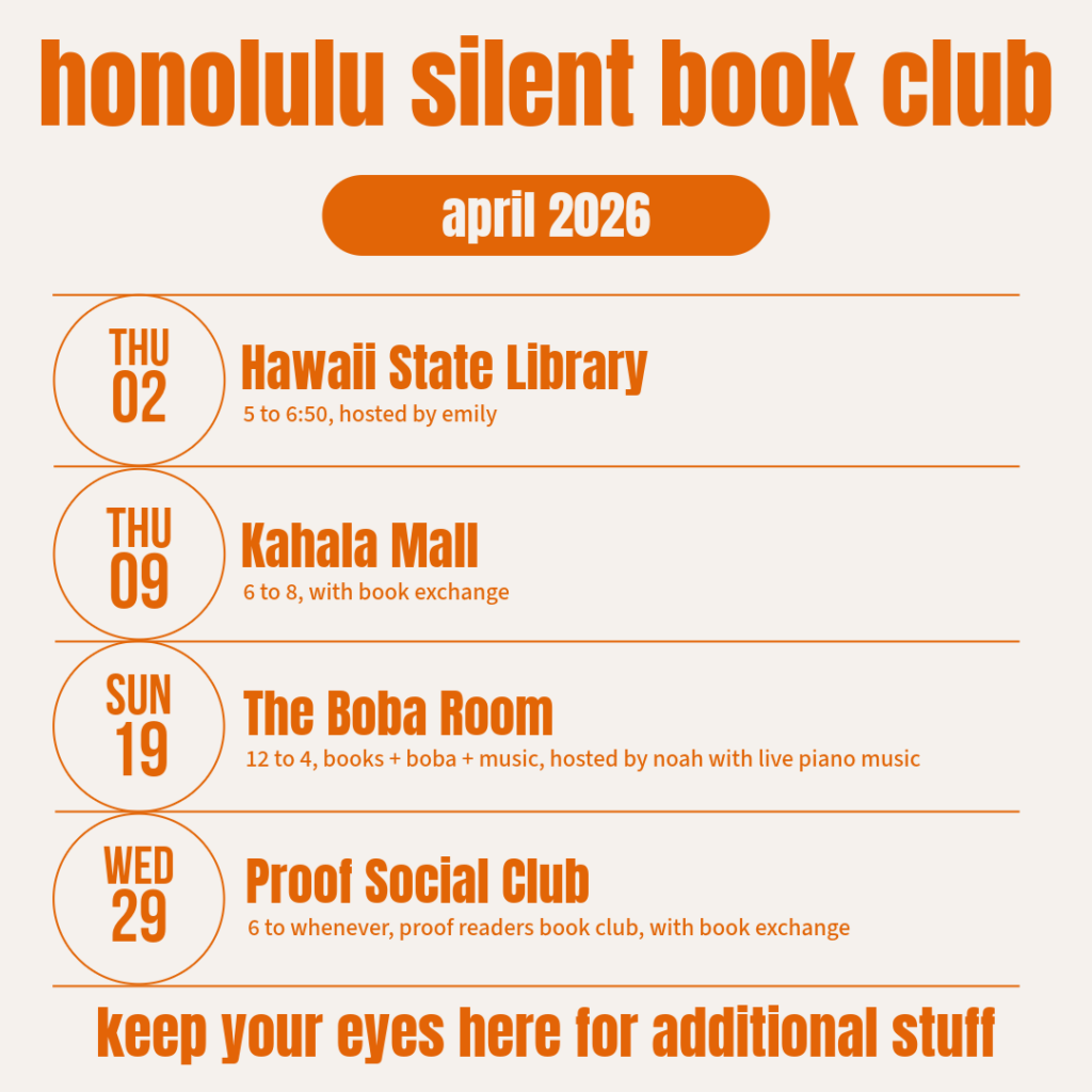 Honolulu SIlent Book Club returns to @thebobaroom808!