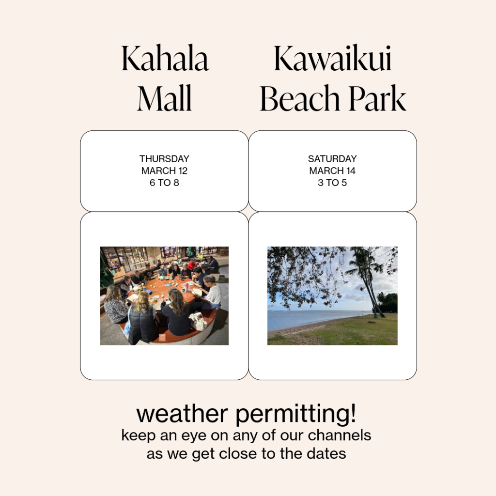 I know. I hate it too. The Kahala Mall meetup is the highlight of my month, but the forecast is for a lot of rain beginning Tuesday and going through Saturday.